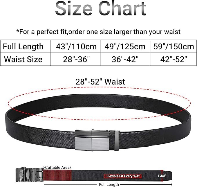 - Cadeau Homme: Livrée avec un joli emballage cadeau, les ceintures homme correspondra à presque toutes les occasions et tenues, ce qui en fait un cadeau idéal pour homme. Pour éviter des tailles inutiles ou trop courtes, choisissez une taille plus grande pour un ajustement facile